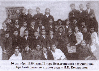 21 июня 1941 года у Вани Кондрашова был выпускной вечер в Краснохолмском педучилище, который запомнился ему на всю жизнь. Гуляли до 8 утра. В полдень вышли на базарную площадь, чтобы купить продукты и услышали по радио выступление Молотова о начале войны. Всех юношей сразу же вызвали в военкомат и велели ждать отправления в воинские части. Уехал домой. В деревне во время ожидании повестки отдыхал: ловил рыбу, ходил в лес, так как работать не давали. Сводки с каждым днем становились все тревожнее, 10 июля получил вызов и поехал в Красный холм. Так закончилась юность, и начались самые трудные испытания - страшная война, со смертями, пленом, голодом, лишениями, потерей друзей и товарищей.