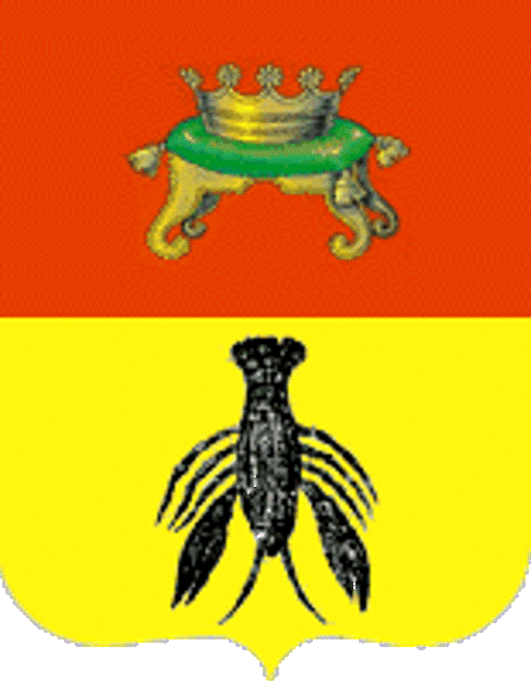 Герб Весьегонска: в верхней части изображена эмблема Тверского наместничества - "в красном поле на зеленой подушке золотая корона", - в нижней - эмблема Весьегонска - "в золотом поле рак черный, которыми воды, окружающие сей город, весьма изобилуют".