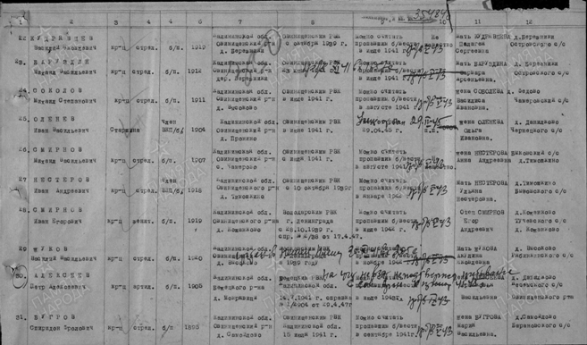 Пропал без вести в Московской области, Ново – Петровском районе, деревня Скирманово 19 ноября 1941 года.
