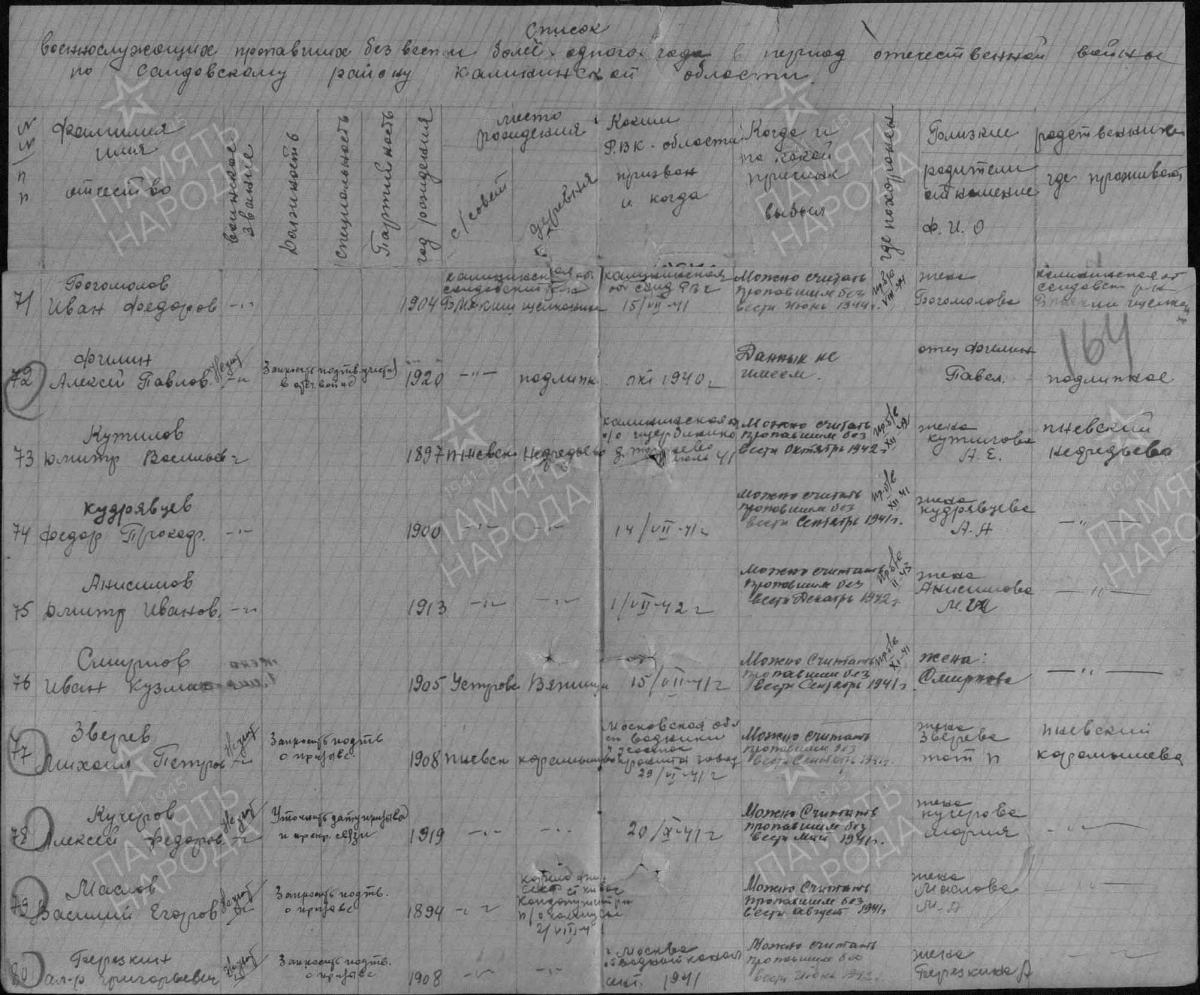 Богомолов Иван Фёдорович в деревне Щелканиха Большемякишевского сельского совета Сандовского района Калининской области в 1904 году. До войны работал в колхозе «Красная Нива».