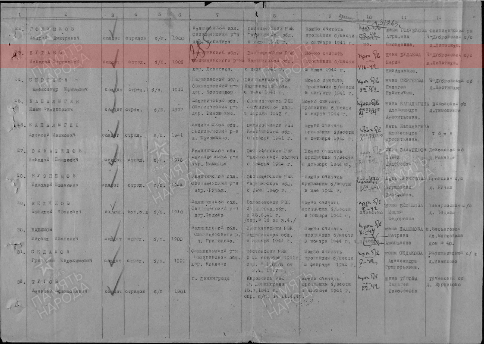 Булаев Николай Сергеевич родился в 1908 г. в д. Лопатиха современного Весьегонского муниципального округа, Тверской области. Крестьянин, беспартийный.