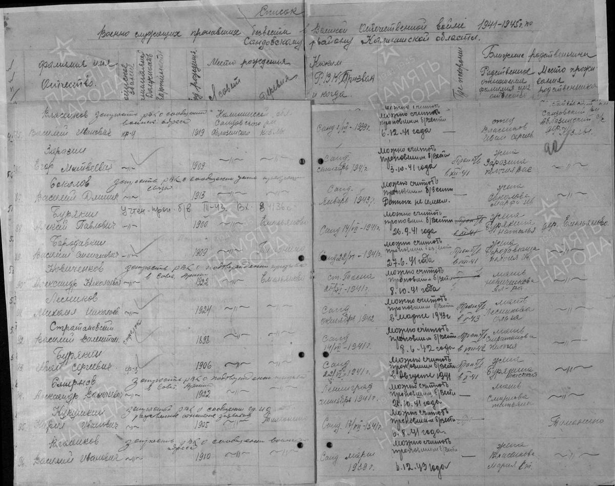 Призван в РККА Сандовским райвоенкоматом Калининской области 22 или 23 июля 1941 года.