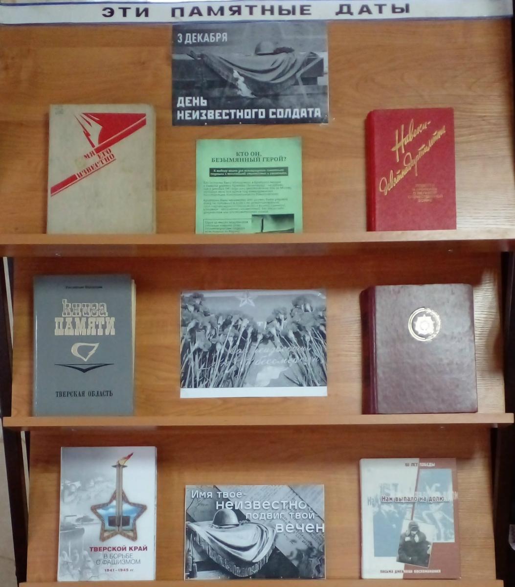 Символом дня 3 декабря стали слова, высеченные на граните Могилы Неизвестного Солдата у стен Московского Кремля: «Имя твоё неизвестно, подвиг твой бессмертен». Именно так мы и назвали нашу памятную беседу с читателями, которая состоялась в Чистодубровской сельской библиотеке. Также мы посмотрели ролик, посвященный этому дню. В библиотечном музее ко Дню Неизвестного солдата была оформлена выставка-память.