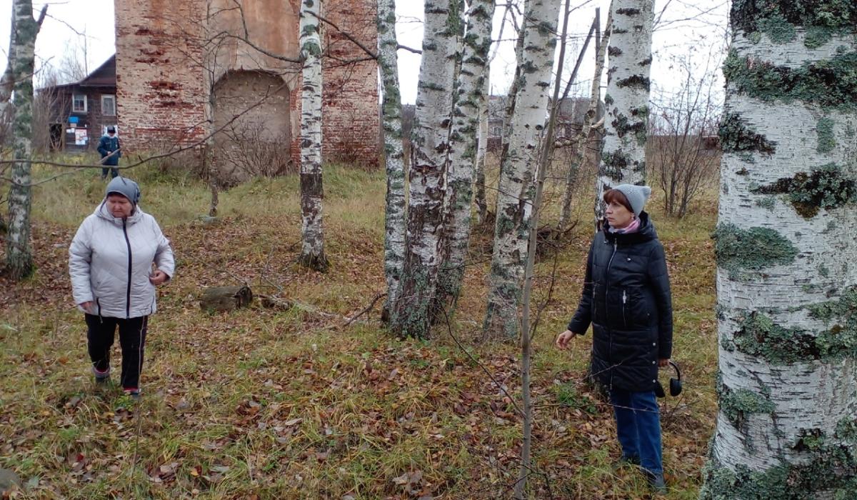 Также в этот день состоялась экскурсия для желающих около часовни-копилки и на месте, где находилась Покровская церковь. Мы осмотрели валуны, которые находились в основании храма, мысленно представили размеры и высоту храма, его былое величие, осмотрели 33-метровую колокольню и остатки её архитектурного убранства (решётки на окнах, ограждение верхнего яруса, балки и стяжки для колоколов, остатки лестниц, ложные окна, остатки примыкания к разрушенному храму).