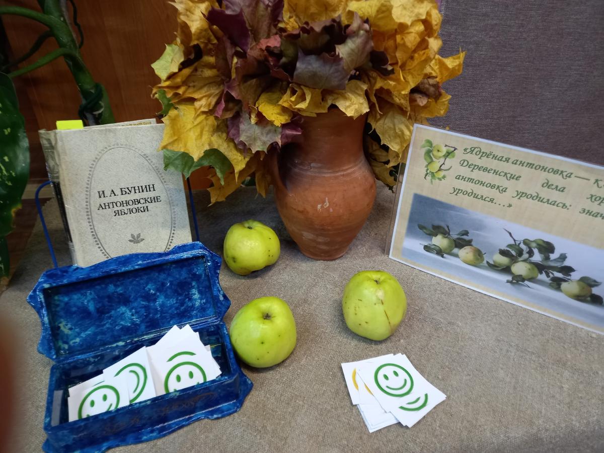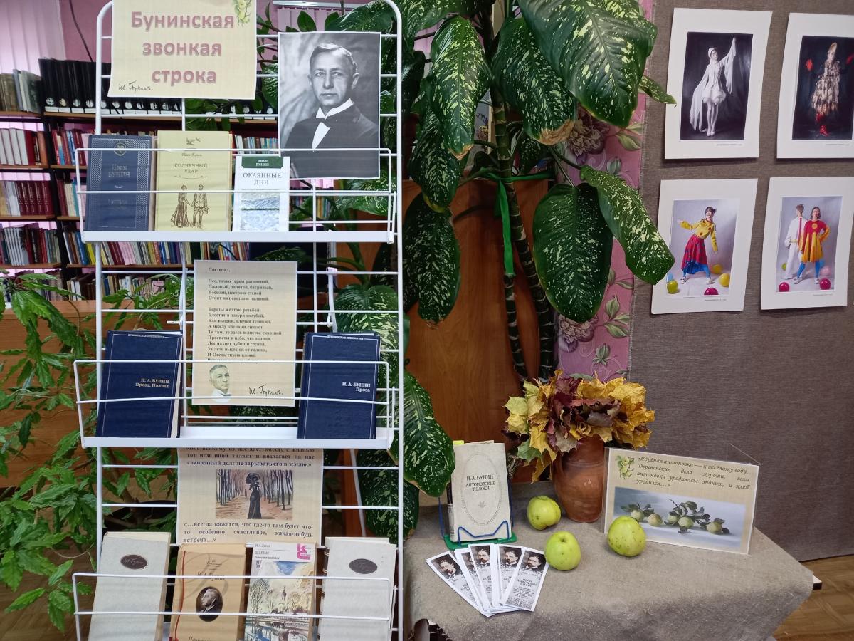 Детей познакомили с ключевыми моментами биографии писателя, раскрывающими его жизненный путь, начиная от дворянских корней и заканчивая эмиграцией. С помощью презентации школьники смогли познакомиться и увидеть бунинские места в России. А книжная выставка «Бунинская звонкая строка» погрузила слушателей в мир бунинской поэзии и прозы. Представляя выставку для слушателей, библиотекарь более подробно остановилась на произведениях: «Антоновские яблоки», «Солнечный удар», «Господин из Сан – Франциско» и зачитывала отрывки из них.