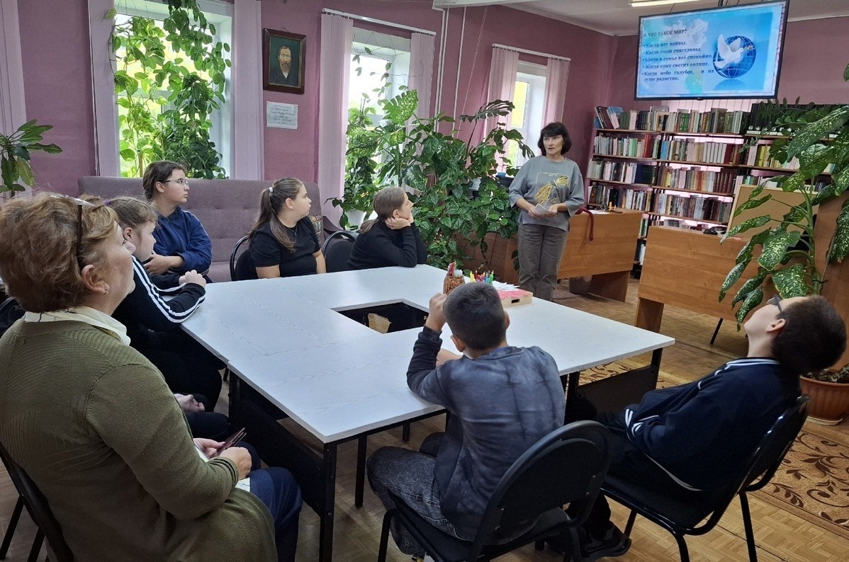 Жить в мире – это самое важное, что может быть на Земле. Ни одна война не сделает людей счастливыми. Ведь ни одна война не обходится без смертей. Мы не можем спасти мир, не изменив его. Такими словами началась беседа о мире.