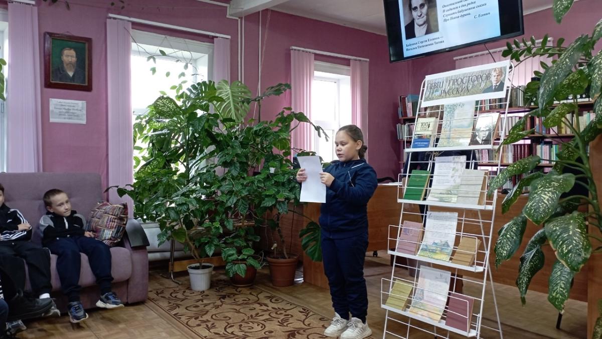В ходе поэтического часа школьники внимательно слушали проникновенные стихи Есенина: «Письмо матери», «Гой ты, Русь, моя родная…», «Эта улица мне знакома…». Смотрели видео романса «Отговорила роща золотая».  Участники с удовольствием вспомнили  знакомые строки поэта в игре «Продолжи строку». А прекрасным дополнением стало чтение стихов самими ребятами у книжной выставки «Певец просторов русских».