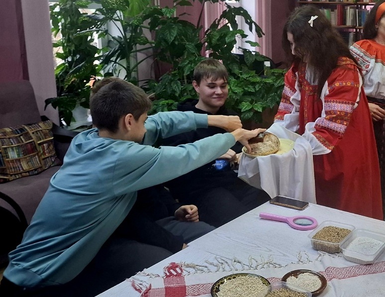 Ребята перенеслись в Древний Египет, чтобы увидеть, как возделывали хлеб, и узнали о высоком статусе пекарей в Древнем Риме. Погружение в русский народный фольклор подарило возможность не только услышать, но и самим попробовать скороговорки и сочинить пословицы о хлебе. Особый восторг вызвала «хлебная лаборатория»: участники с азартом сравнивали колосья различных злаков, муку и крупы. В завершение встречи юные краеведы насладились ароматными мучными изделиями, получили в подарок рецепт традиционного хлеба и унесли с собой заряд позитивных эмоций.