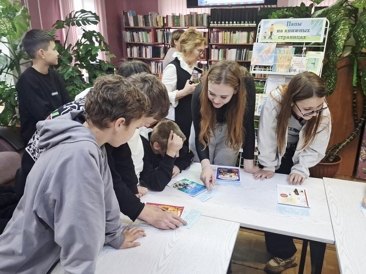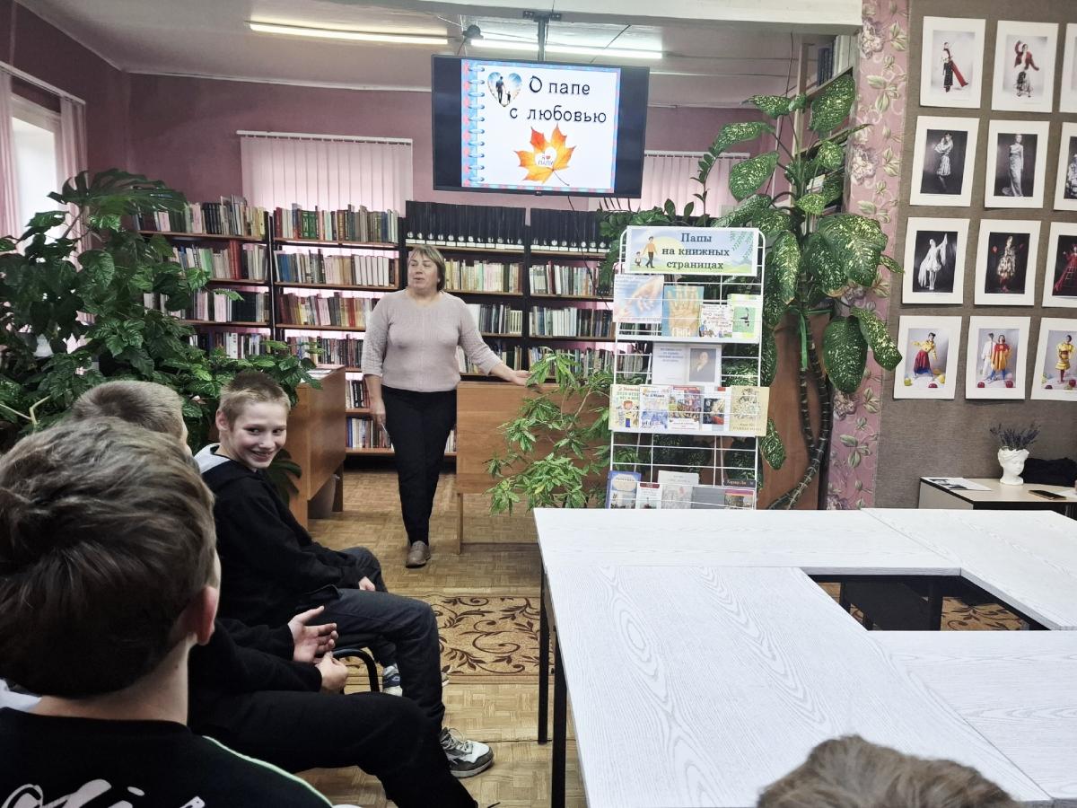 В России День отца отмечают в третье воскресенье октября. Накануне праздничного события в центральной библиотеке для учащихся 6 «В» класса состоялся разговор у книжной полки «О папе с любовью».