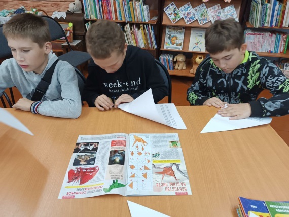 После познавательной беседы ребята перешли к увлекательному занятию — изготовлению оригами. Мальчишки с огромным интересом и увлечением листали страницы журналов, выбирали понравившиеся схемы и приступили к созданию фигурок из бумаги.